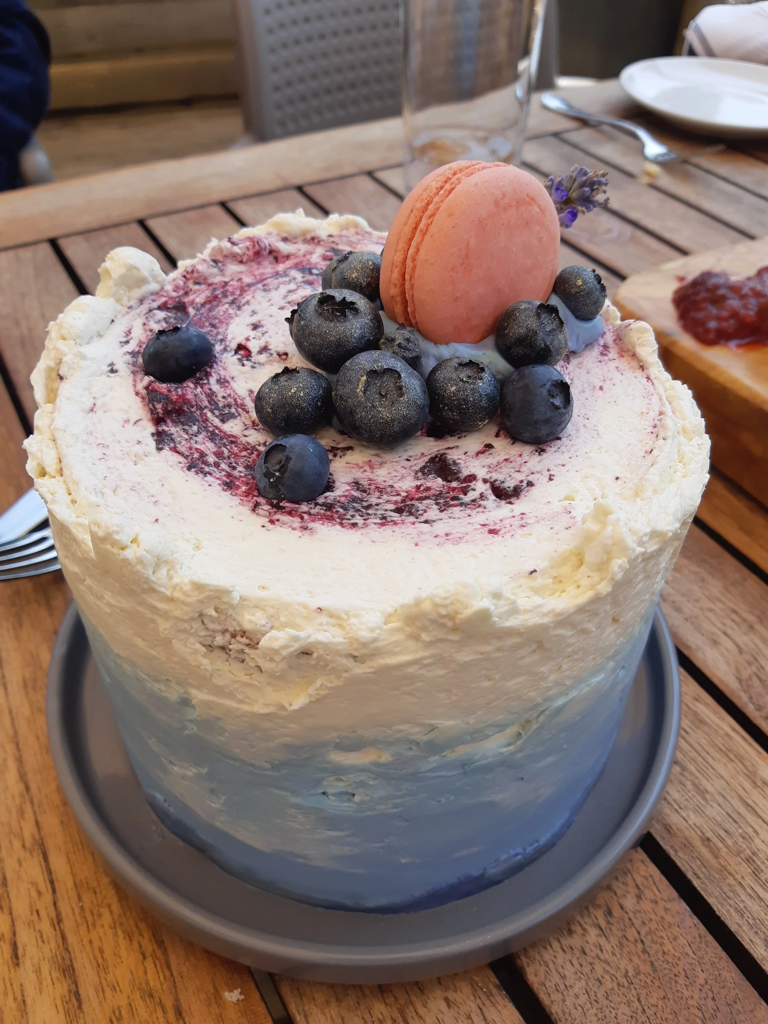 Wedding Cakes - Earl Grey Tea cake, Blueberry Curd and Lavender-Vanilla Buttercream. A cake at every table (6 total) meant each table could serve themselves and leftovers packed up by guests.